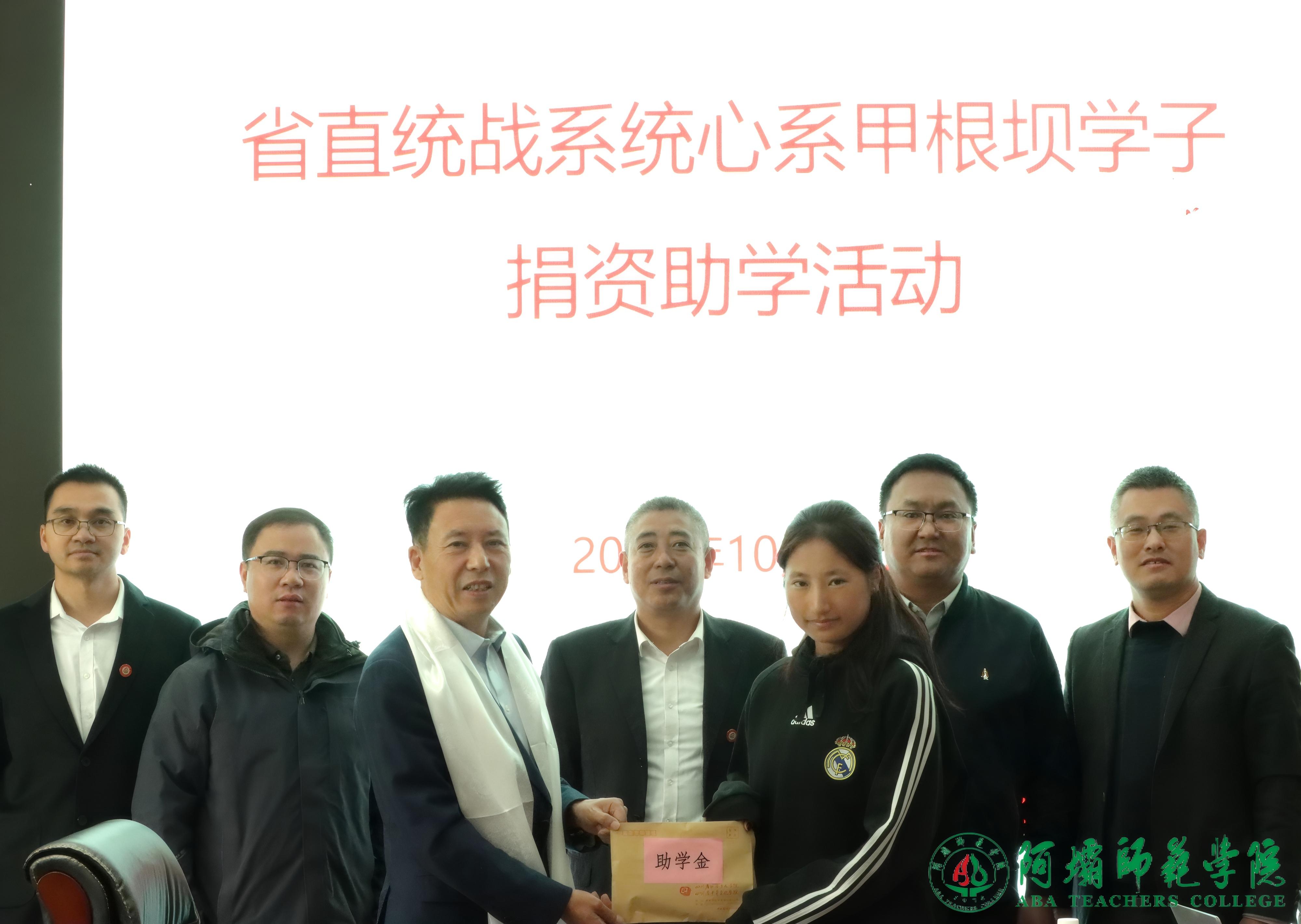 【本网讯】10月23日上午,省直统战系统心系甲根坝学子产学研及捐资助学活动在我校藏汉双语学院F205会议室举行。成都市新都区第十九届人大代表、新阶会会长、四川蓉科强工程管理咨询有限责任公司创始人余作强,董事会秘书、人力资源发展部常务副主任赖寒;四川省社会主义学院中华文化教研部副主任、康定市甲根坝镇日泽村第一书记廖新生;阿坝师范学院藏汉双语学院党委书记余宗贤、副院长多杰扎西、党委副书记霍续龙、思政辅导员郎央章、受助学生泽汪拉姆;宣传统战部统战科副科长陈凌云参加活动。